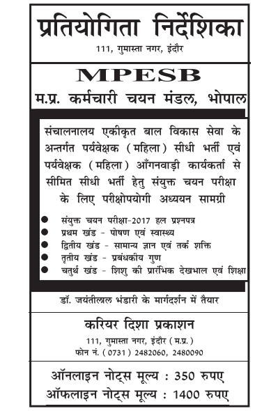 म.प्र. कर्मचारी चयन मंडल समूह-1, उप समूह-3 के अन्तर्गत खंड विस्तार अधिकारी, सांख्यिकी अधिकारी, प्रबंधक (सामान्य), सामाजिक कार्यकर्ता व अन्य समकक्ष रिक्त पदों की पूर्ति हेतु संयुक्त भर्ती परीक्षा-2024