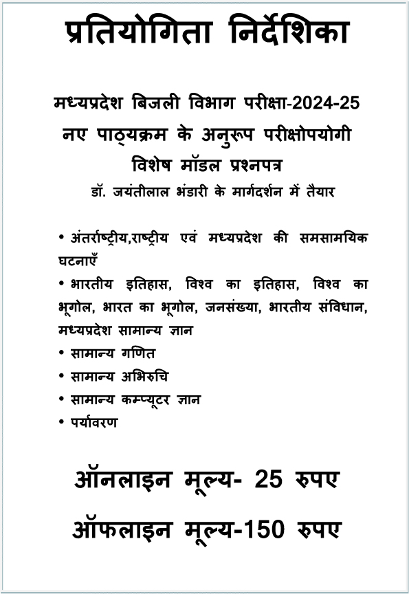 मध्यप्रदेश बिजली विभाग भर्ती परीक्षा -2024-25 printed